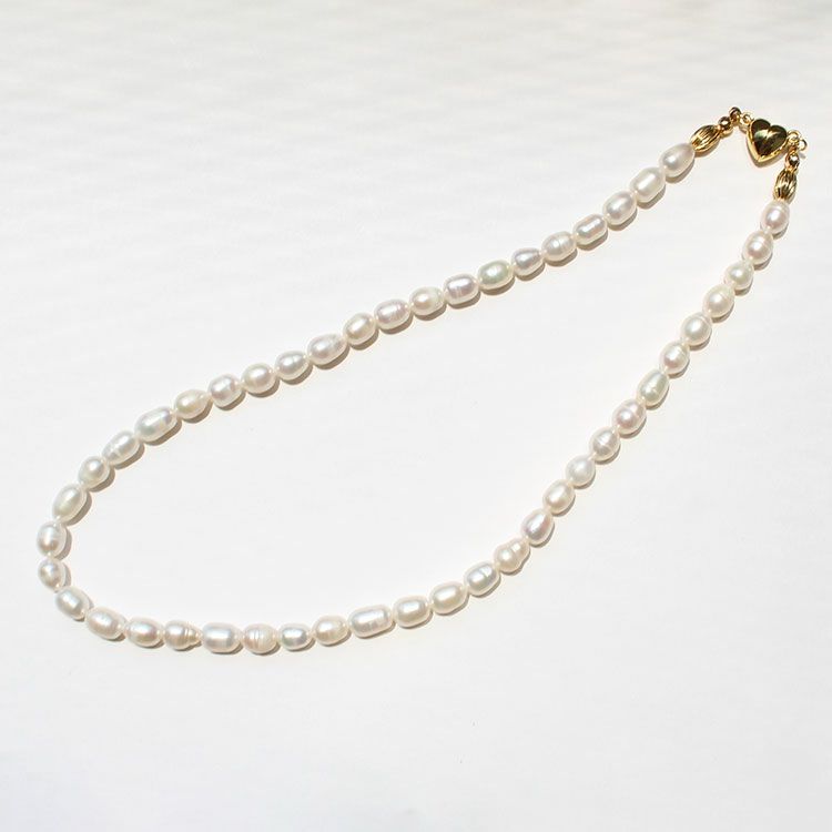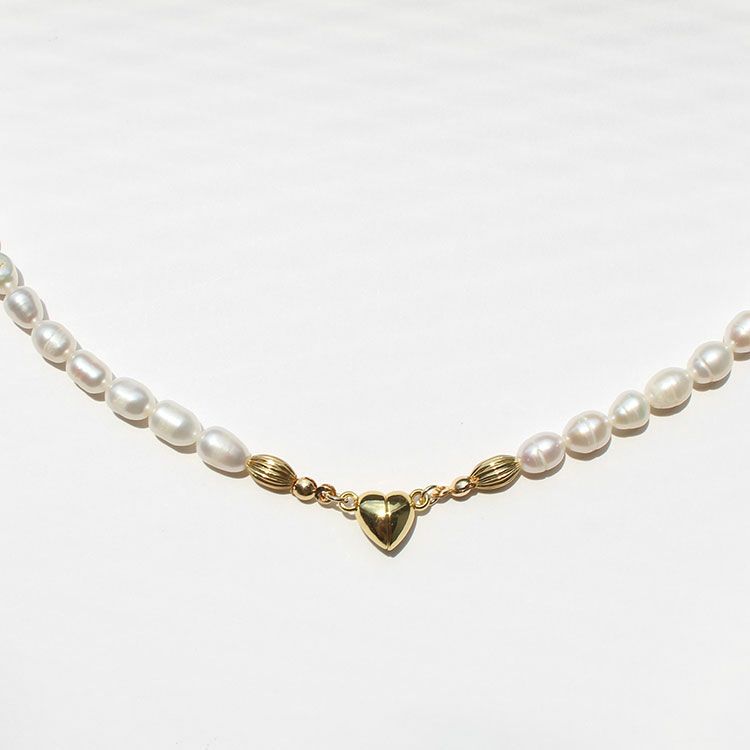 オーバル形の淡水パールショートネックレスはパーティシーンはもちろん、デイリー使いにもご利用いただける優れもの。留め具がハートになっているので、あえて留め具を前にして2Wayでもご利用いただけます。約42cmという使いやすい長さや、マグネット式の留め具のため着脱がスムーズです。