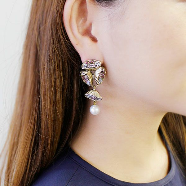 ヴィンテージアクセサリーを模して作られたこだわりのピアス。