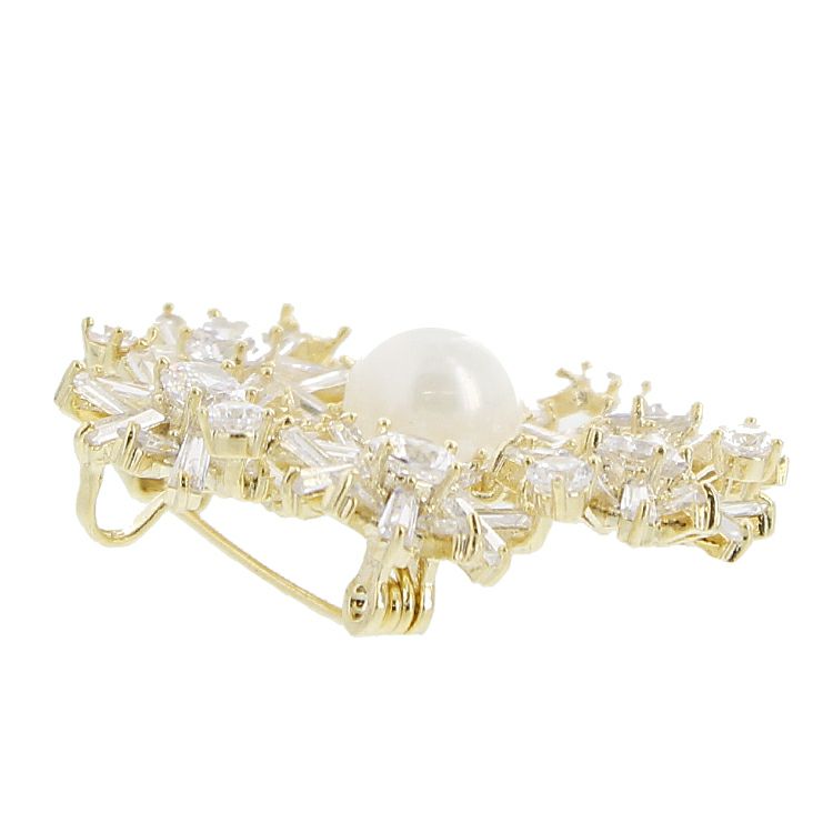 ゴールドベースにクリアなキュービックジルコニアが煌めく、エレガントなブローチ。