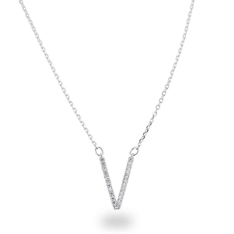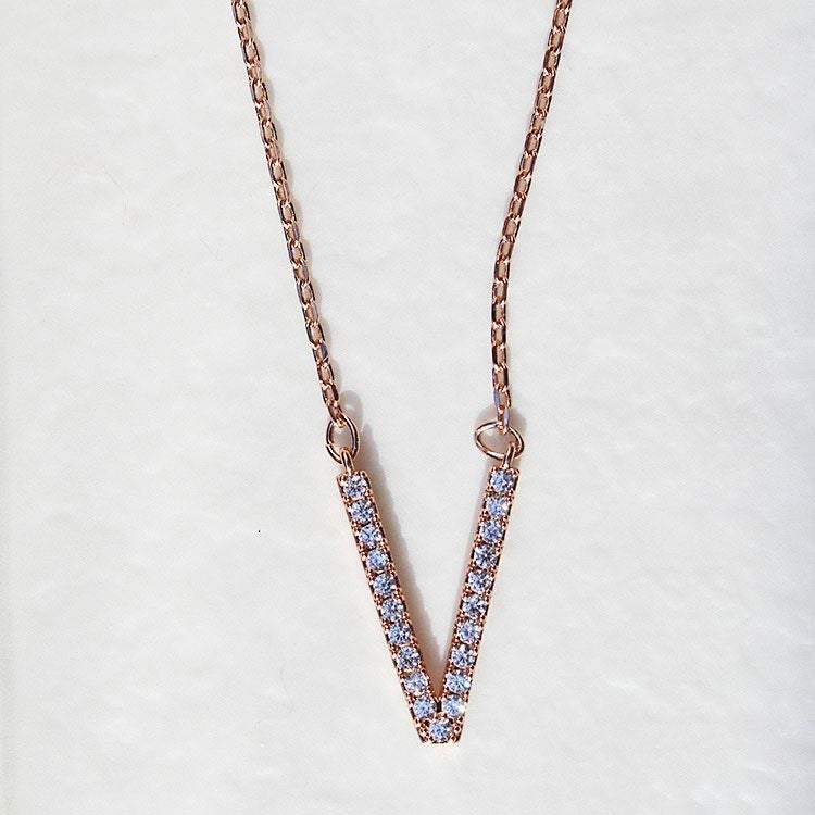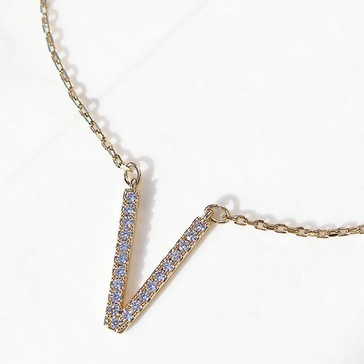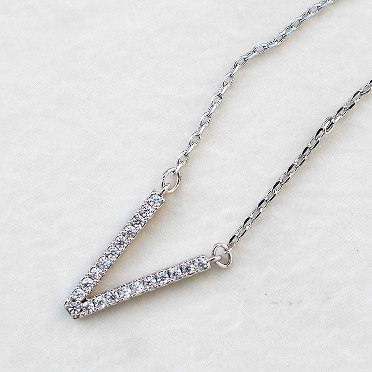 キュービックジルコニアの輝きが美しいショートネックレス。華奢なチェーンにV字のデザインがスッキリと上品な印象にしてくれます。