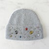 大きくカラフルなビジューが美しいニット帽。被るだけでたちまちオシャレな雰囲気に。冬の装いをエレガントに飾ります。