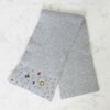 大きくカラフルなビジューがアクセントになったニットマフラー。首に巻くだけでたちまちオシャレな雰囲気に。冬の装いをエレガントに飾ります。