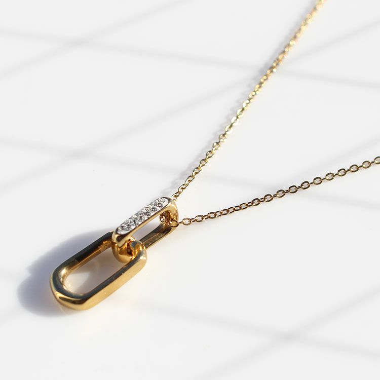 ラウンドレクタングルの2つのパーツが組み合わさったショートネックレス。細身のチェーンが華奢でフェミニンな印象をあたえてくれます。チェコクリスタルの煌きが華やかでこなれ感を演出。デイリーはもちろん、セレモニーやオケージョン、オフィス使いにもご使用いただけます。 留め具はマグネット式のため着脱がスムーズ。