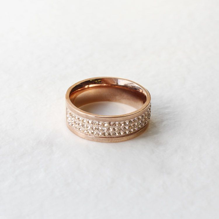 リングの表面の溝にチェコクリスタルガラスがパヴェ状にあしらわれたハーフエタニティリング。