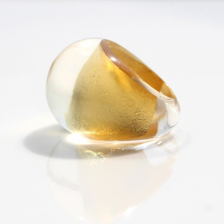 上質な樹脂、ポリエステルレジンの特性を活かし、ガラスのような質感を再現しつつも、軽くてつけやすいことで人気を博しています。金属アレルギーの方でも安心してお使いいただけます。