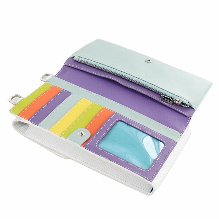 ショルダーストラップ付きのフォンポーチは、ミケランジェロならではの気分が上がるデザインと豊富な収納力が魅力。