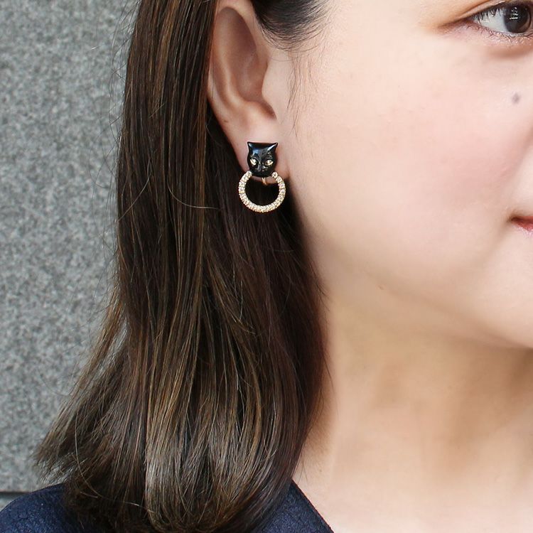 表情まで凛とした印象にしてくれそうな、艶やかなエナメルのパンサーモチーフが目を惹くラグジュアリーなイヤリング。