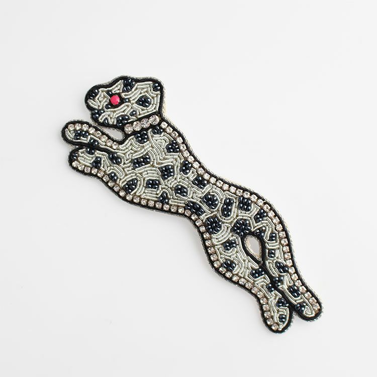 繊細なビーズ刺繍が施されたレオパードビーズブローチ。軽量のため、お洋服はもちろん、スカーフ留めやニット帽、マフラー、バッグなど、どんなアイテムでもご使用いただきやすいのが特徴です。