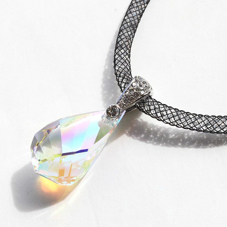 クリスタルガラスのドロップモチーフが印象的なショートネックレス。キラキラと輝きを放つ、カットガラスで満たされたメッシュコードは付け心地軽やか。マグネットクラスプで着脱も簡単です。
