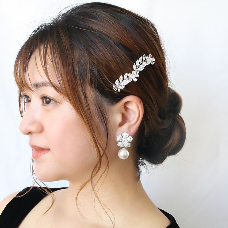 キュービックジルコニアフラワーモチーフヘアクリップ
