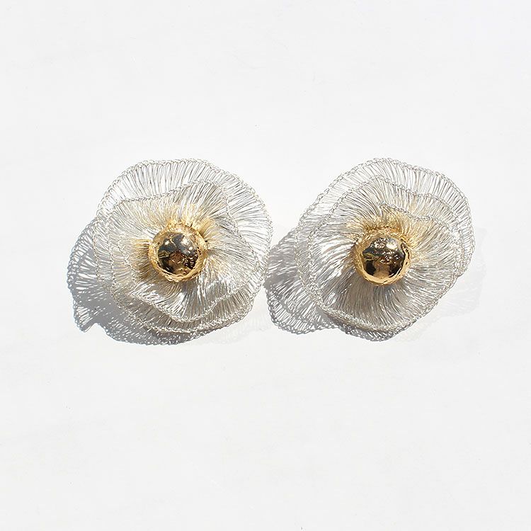 フラワーモチーフ×ビジューワイヤーアートイヤリング