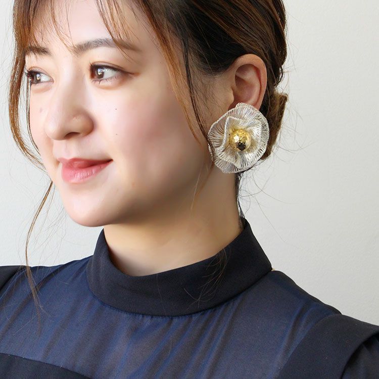 メタルフラワー×ガラスパールデザインイヤリング