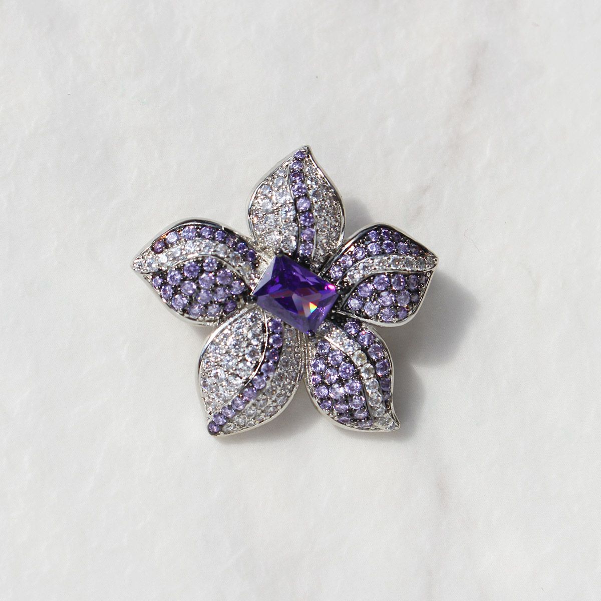 キュービックジルコニアフラワーモチーフブローチ