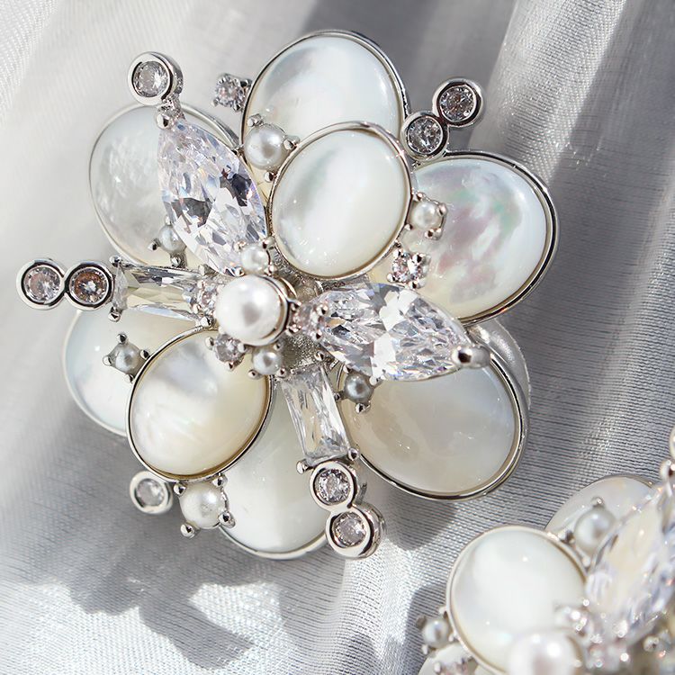 キュービックジルコニア×シェルパールフラワーブローチ