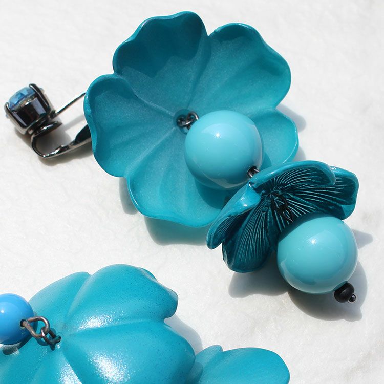 イタリア製フラワーモチーフロングイヤリング