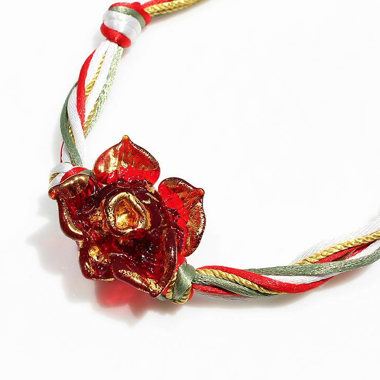 ベネチアンガラスオロロットローズモチーフショートネックレス