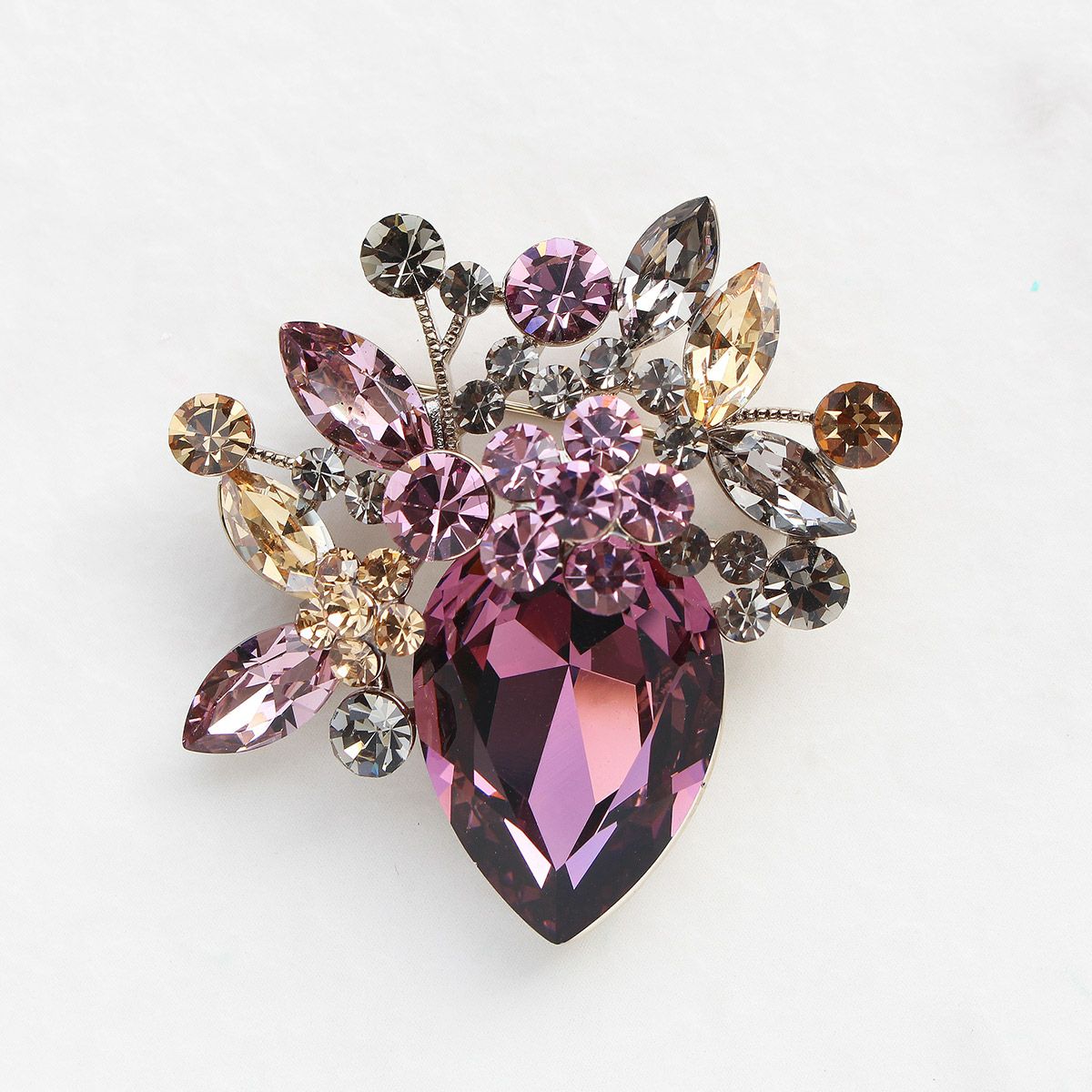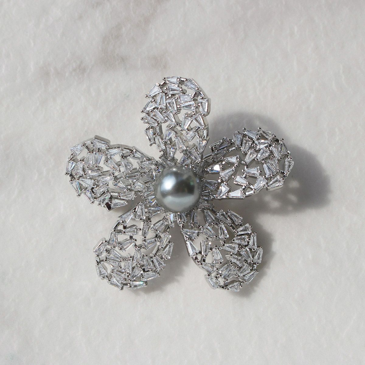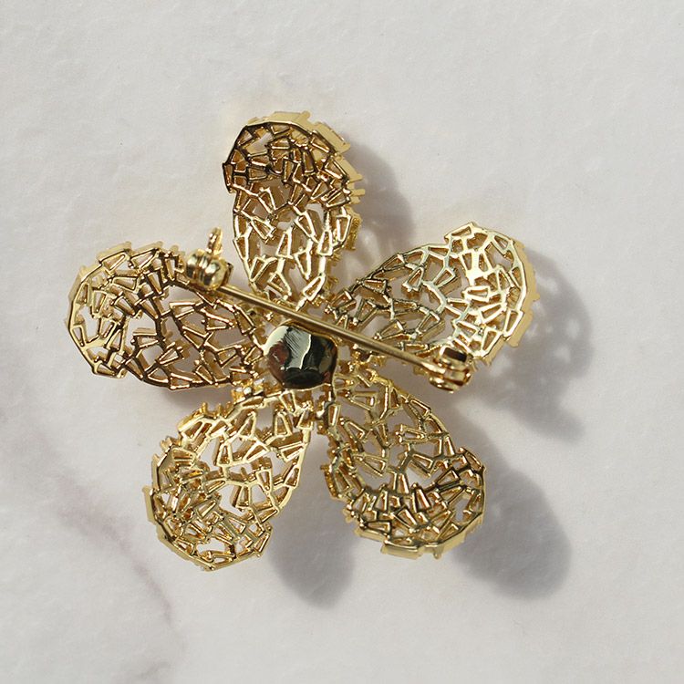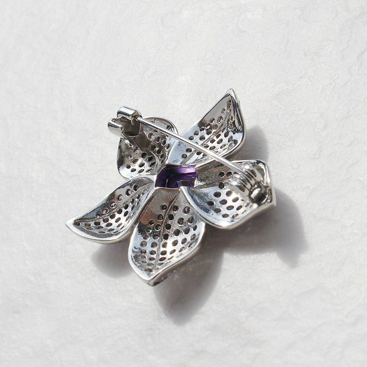 キュービックジルコニアフラワーモチーフブローチ