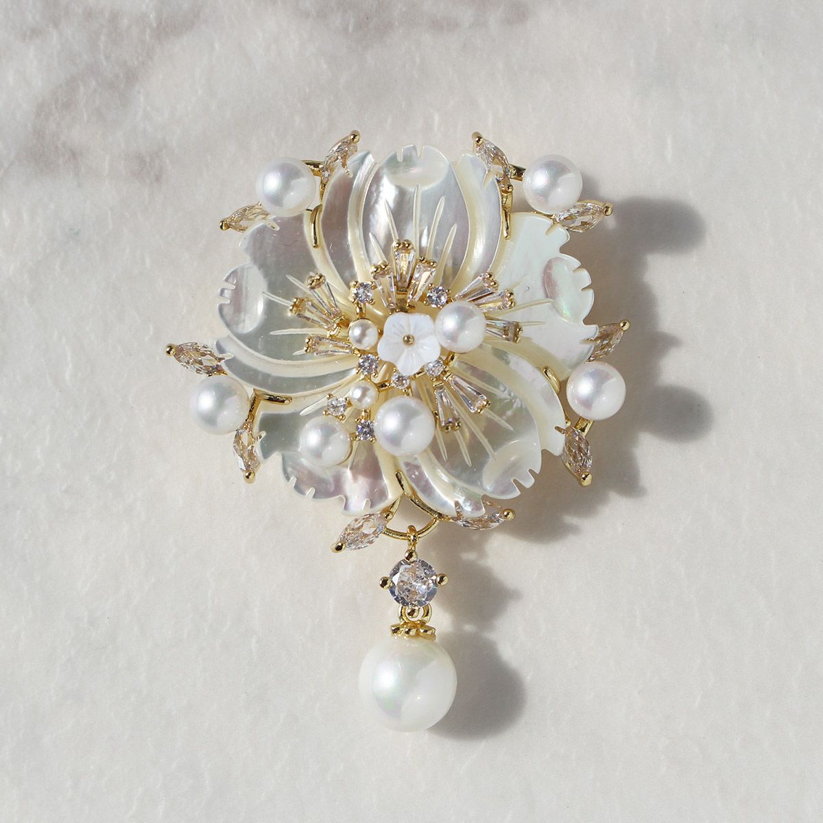 キュービックジルコニア×シェルパールフラワーブローチ