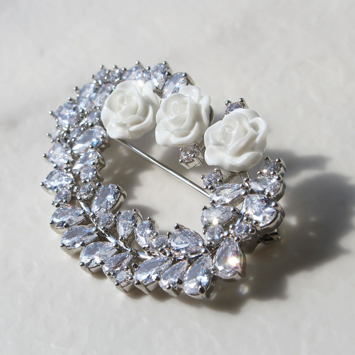 ローズモチーフキュービックジルコニアブローチ