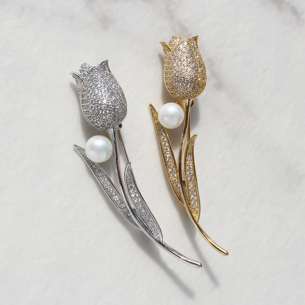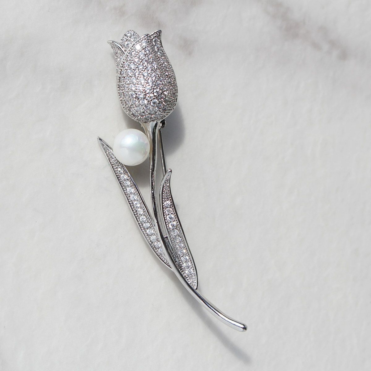 チューリップモチーフキュービックジルコニアブローチ
