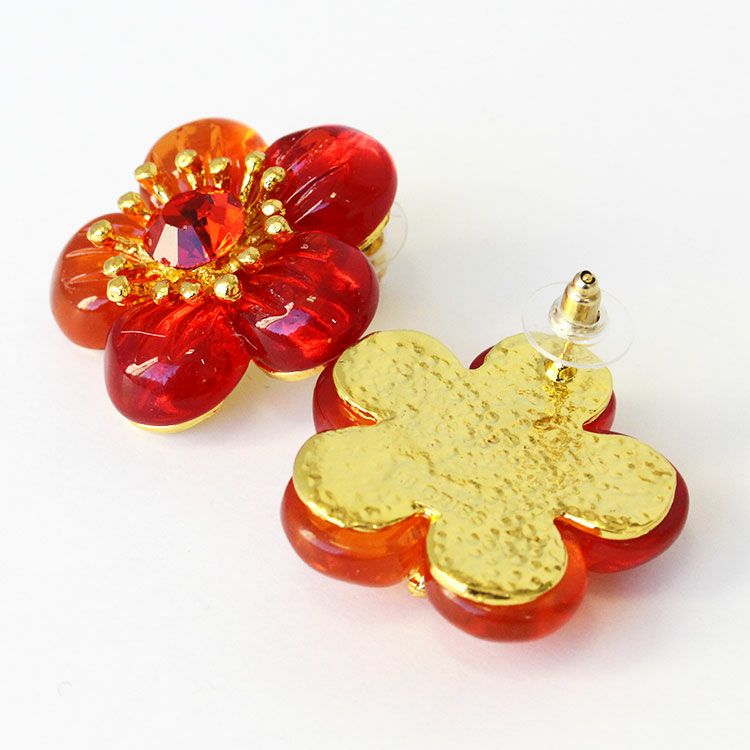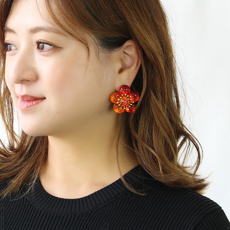 ビーズフラワーボタンイヤリング/3181083-