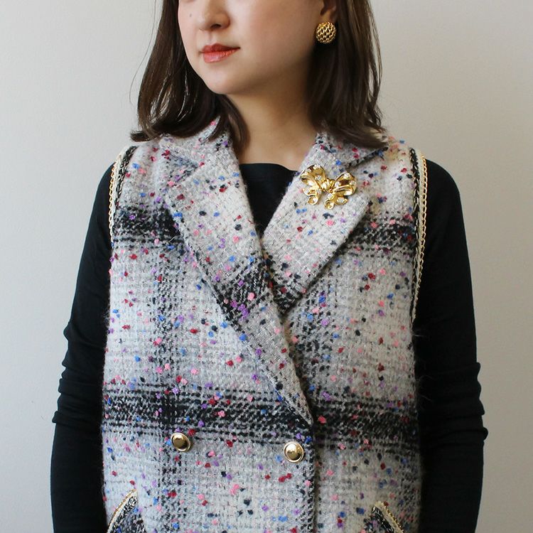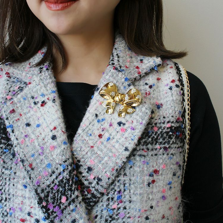 【アルファジュエリー】ヴィンテージイギリス製ドットリボンモチーフブローチ