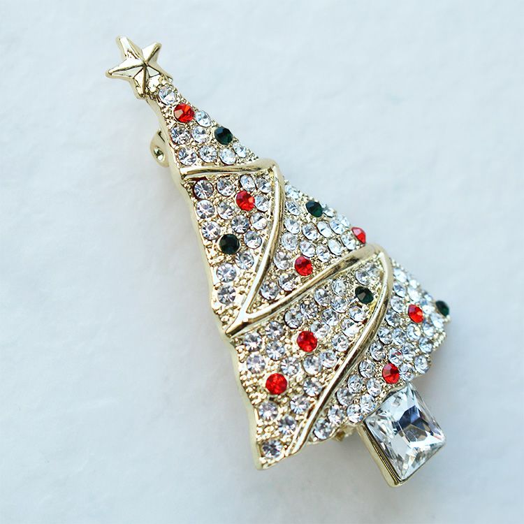 ホリデームード溢れるクリスマスツリーをモチーフにしたキラキラのブローチ。
