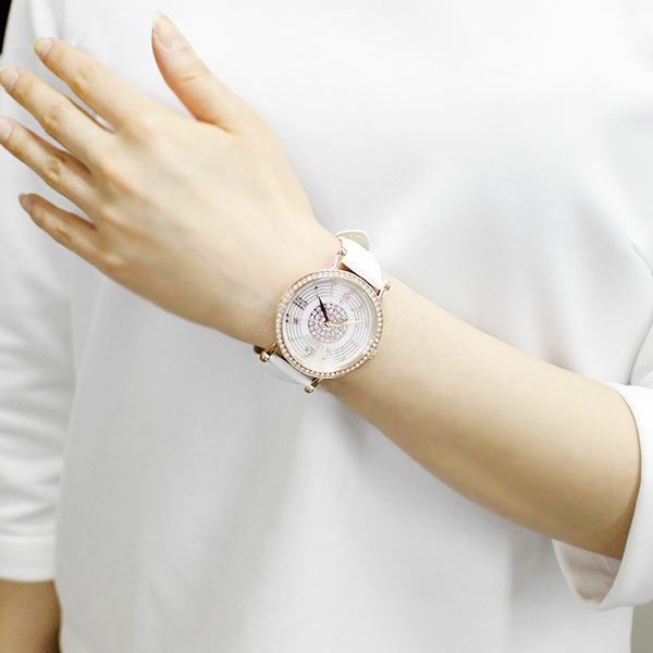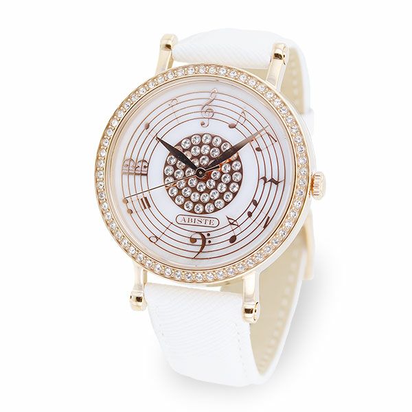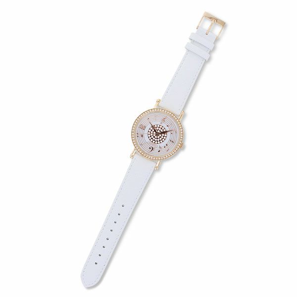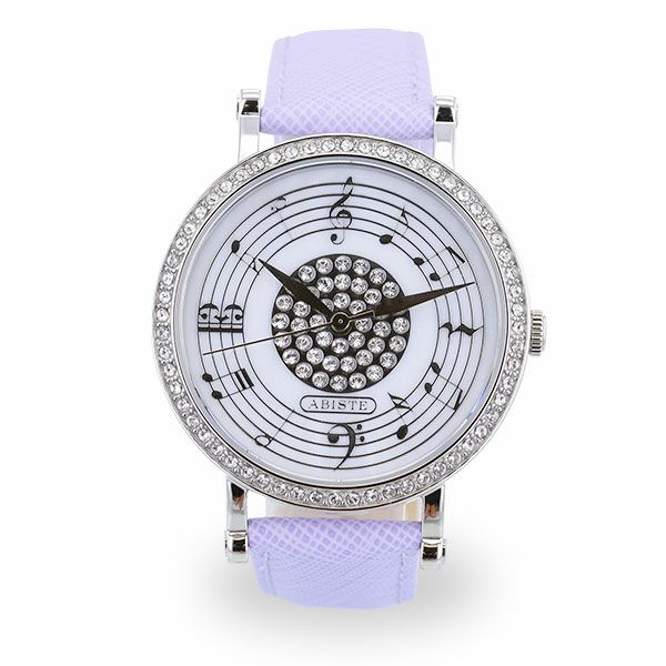 音符モチーフが気持ちを明るくさせる腕時計。フェイスにあしらわれたクリスタルガラスが、エレガントな腕元を演出します。