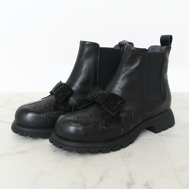 牛革サイドゴアリボンデザインショートブーツ