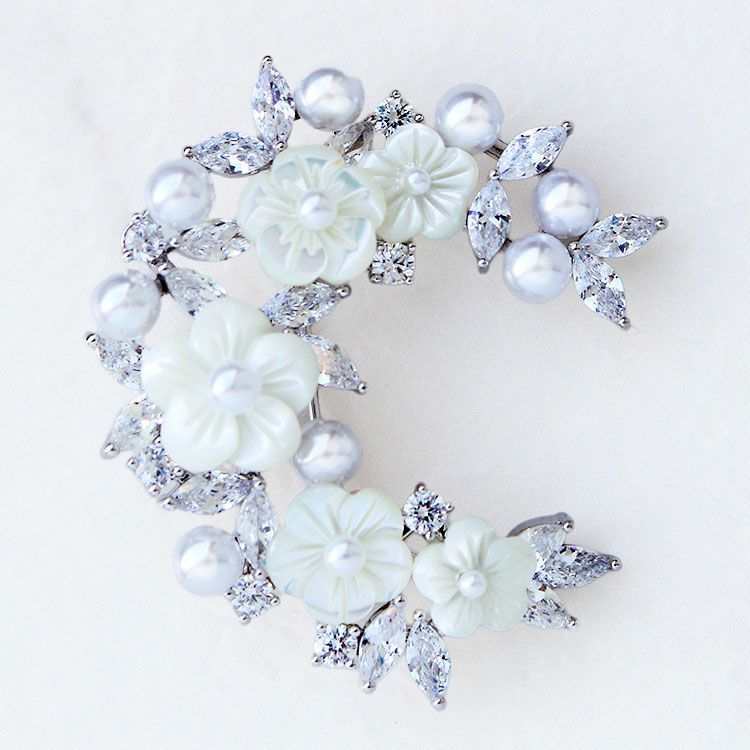 キュービックジルコニア×シェルパールハーフムーンブローチ