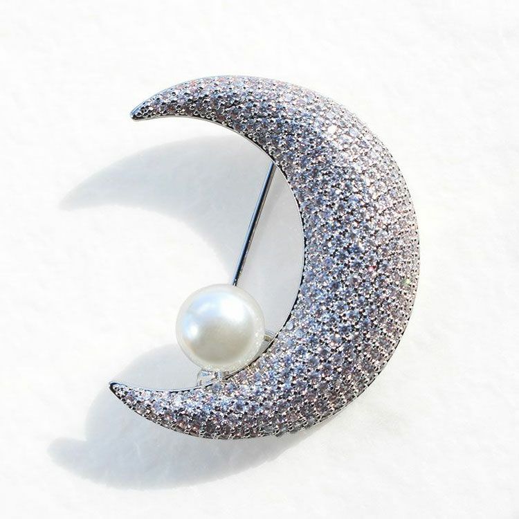 キュービックジルコニア×パール三日月モチーフデザインブローチ