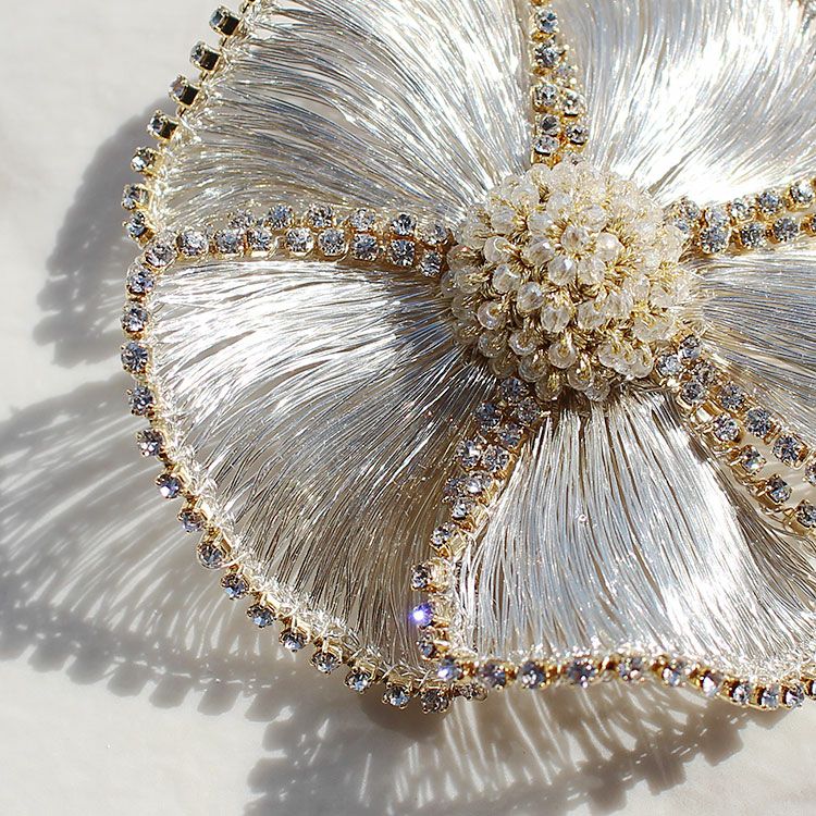 コットンパールフラワーモチーフピンブローチ