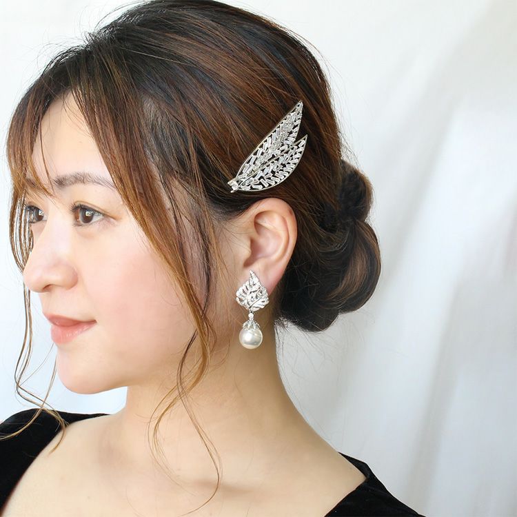 キュービックジルコニアリーフモチーフ×パールバレッタ