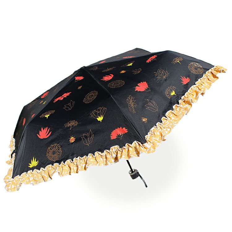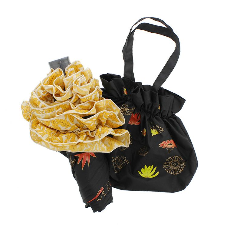 ガーベラの花をイメージして作られたアビステオリジナル晴雨兼用折り畳み傘。ガーベラの周りには、幸運モチーフのてんとう虫やハチがあしらわれています。遊び心のあるユニークなデザイン。遮蔽率にも優れ、雨はもちろん、紫外線からもしっかりと守ってくれます。持ち運びに便利なポーチ付き♪