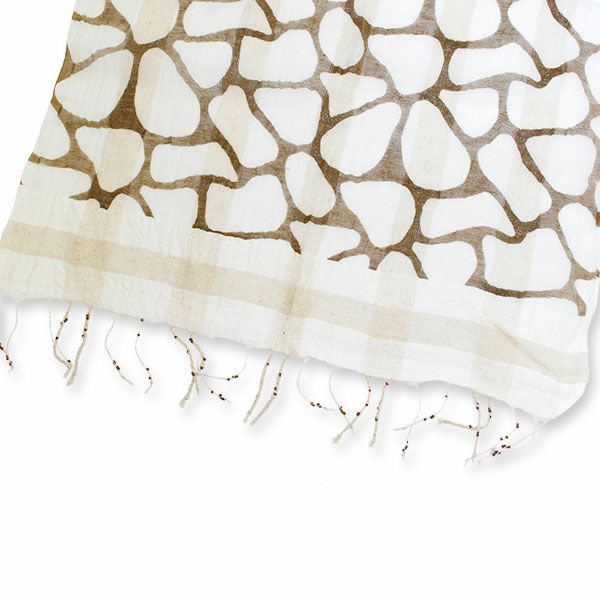 シルク混の柔らかい肌触りのプリントストール。巻き方次第で幾通りにもアレンジ可能! 首元にかけるだけでワンポイントのおしゃれに♪
