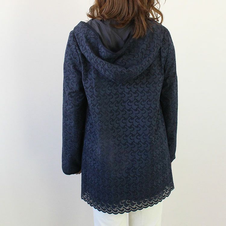 総レースで仕上げた薄手の日本製コート。総裏地付きで風を通さないので、春や秋、季節の変わり目に最適です。身ごろの下の部分はあえて裏地を付けず、レースの美しさが際立つようにデザインされています。
