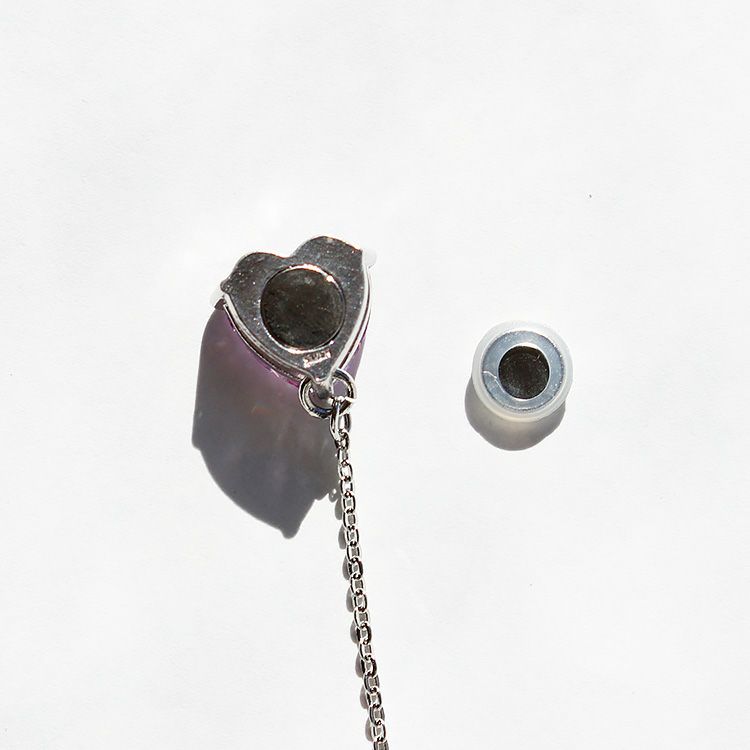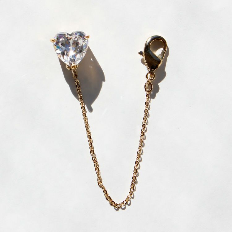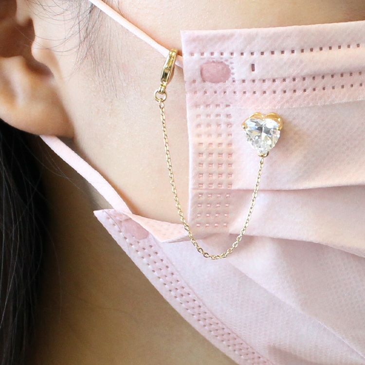 光り輝くキュービックジルコニアを使用したマスクチャームが登場。耳に引っ掛ける紐部分にカニカンで引っ掛けて、チャームはマスク裏側からマグネットで留める仕様になっております。マグネットにはシリコンゴムのカバーが付いているので、マグネットが肌に直接当たる心配もありません。