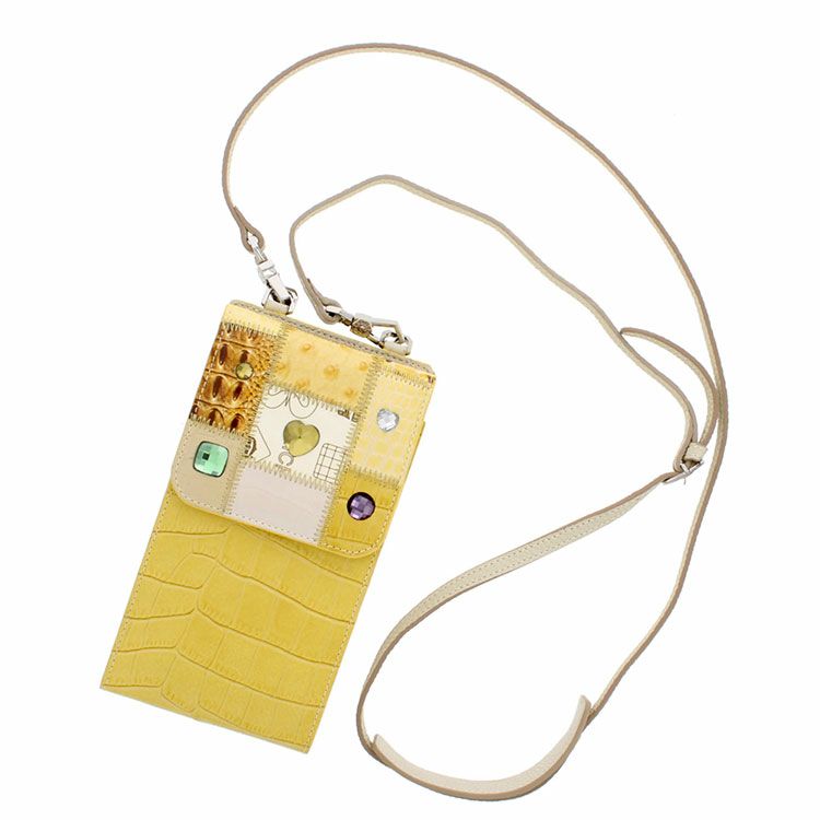 ショルダーストラップ付きのフォンポーチは、ミケランジェロならではの気分が上がるデザインと豊富な収納力が魅力。
