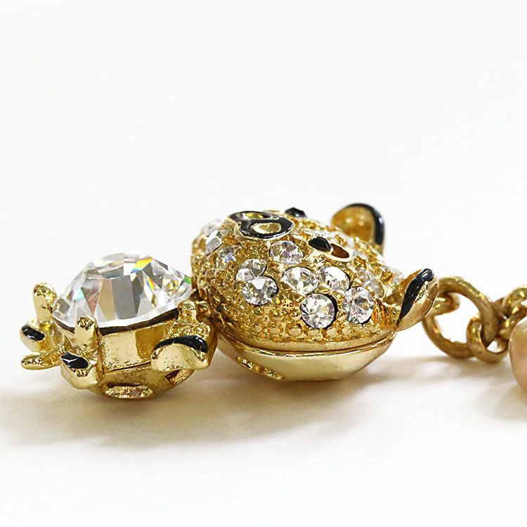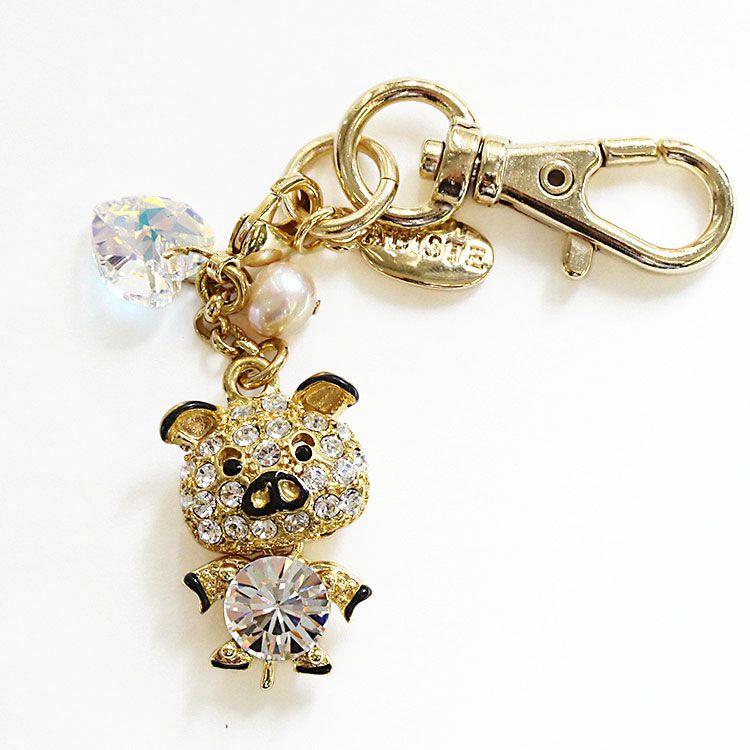 人気のミニブタキーホルダー。ハートのクリスタルガラスがキュート。