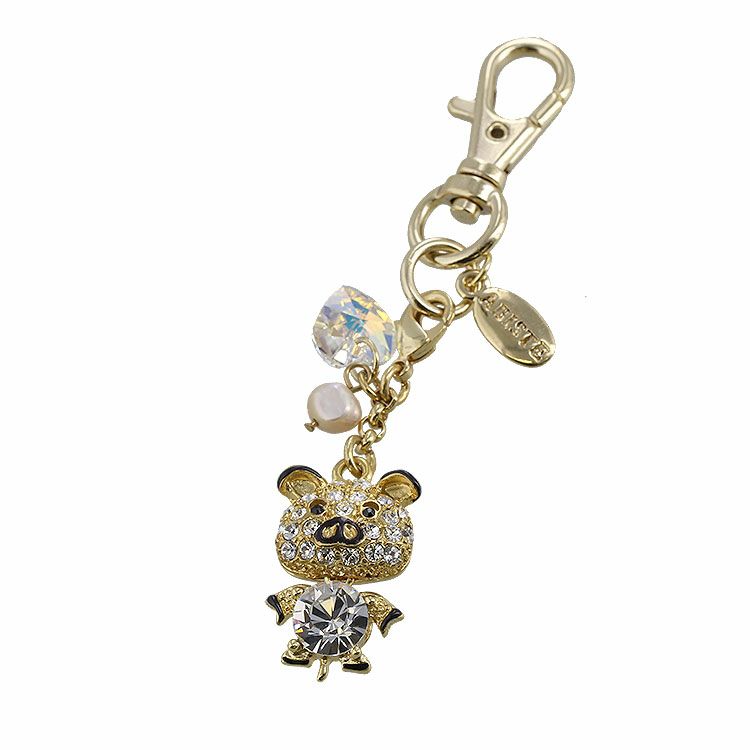 人気のミニブタキーホルダー。ハートのクリスタルガラスがキュート。