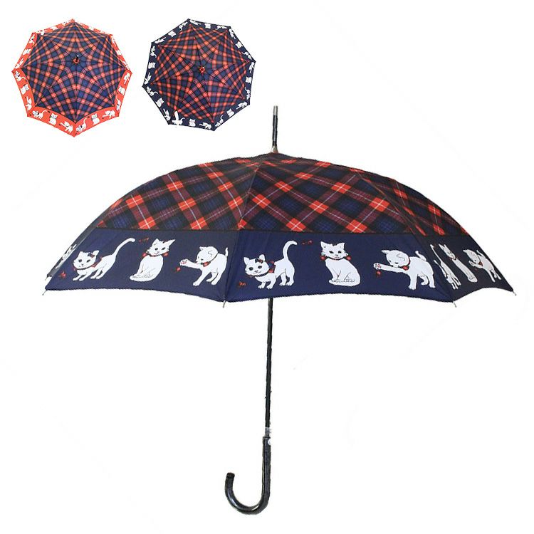【Guy de jean】ネコモチーフ×チェック晴雨兼用長傘/2243003-