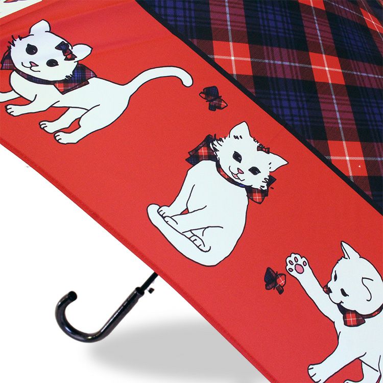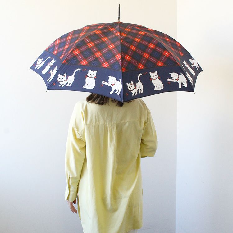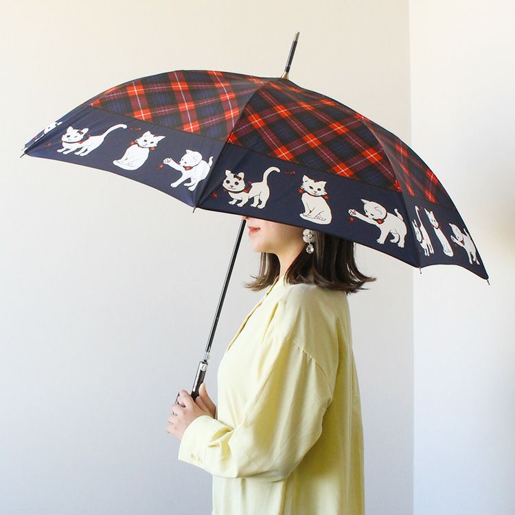 【Guy de jean】ネコモチーフ×チェック晴雨兼用長傘/2243003-