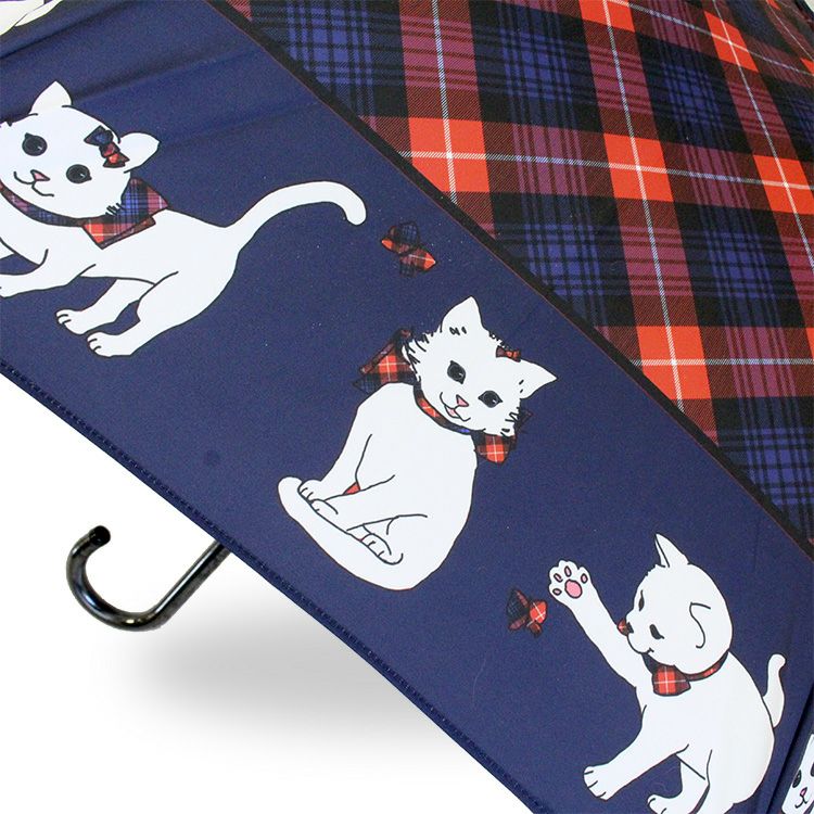 【Guy de jean】ネコモチーフ×チェック晴雨兼用長傘/2243003-