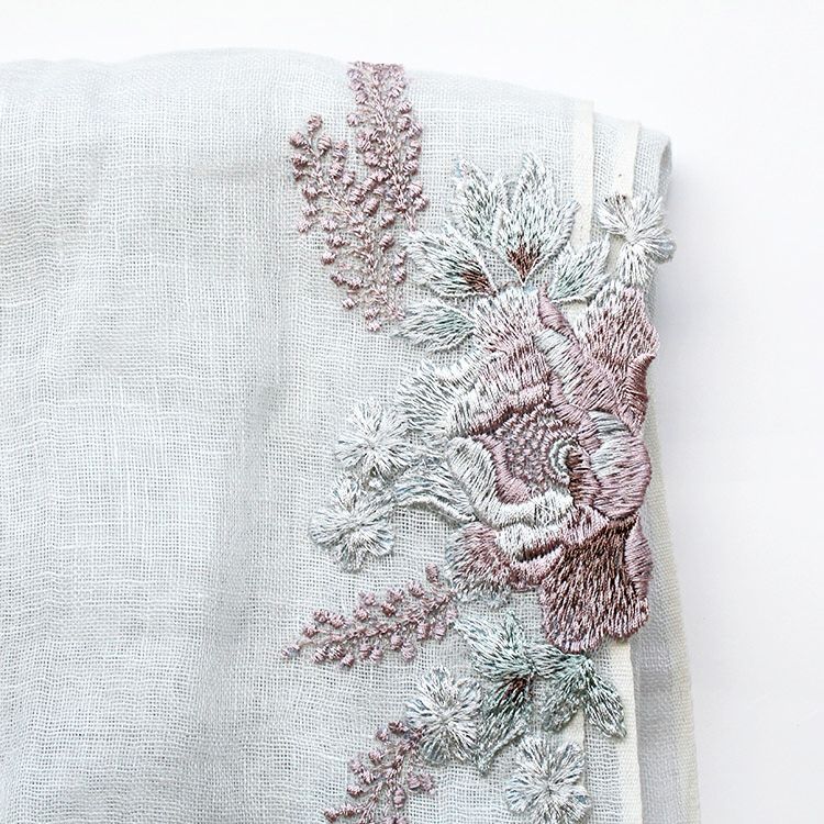 リネン100%フラワーモチーフ刺繍ストール/2253015-