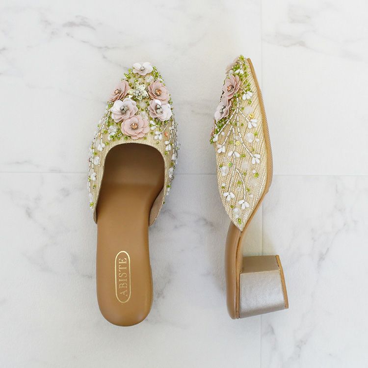 スパンコールやビーズで華やかな刺繍を施されたミュール。立体感のある刺繍は職人によって一つひとつ丁寧に作られています。
