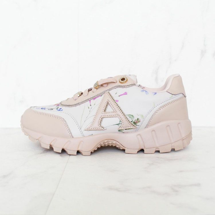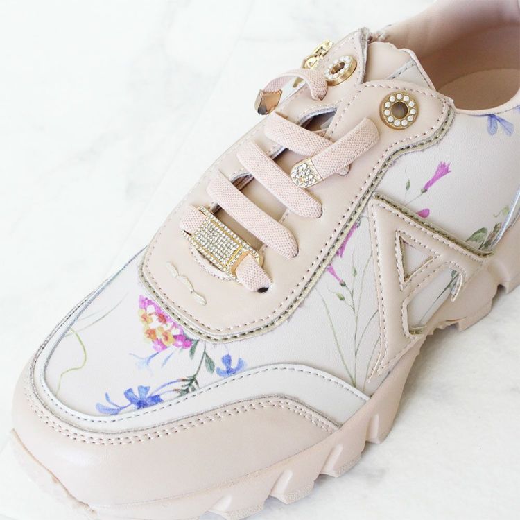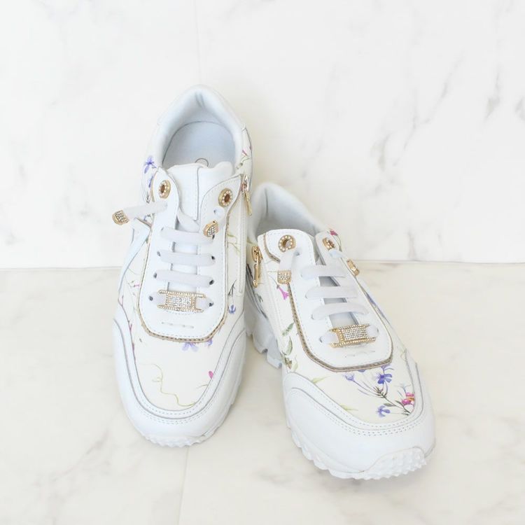 花柄のプリントを施し、パールやキラキラなどフェミニンな要素を散りばめたスニーカー。カジュアルすぎないデザインなので、ワンピースなどと合わせてレディな着こなしを楽しむのも◎。
