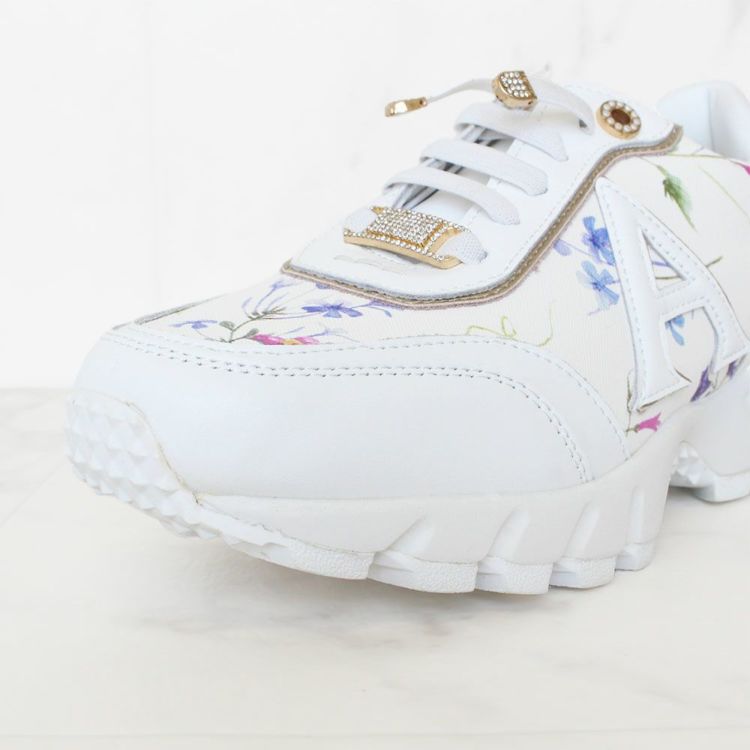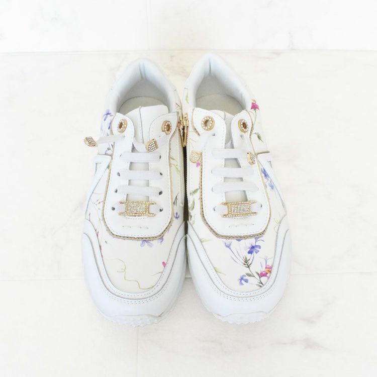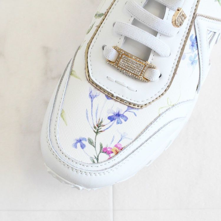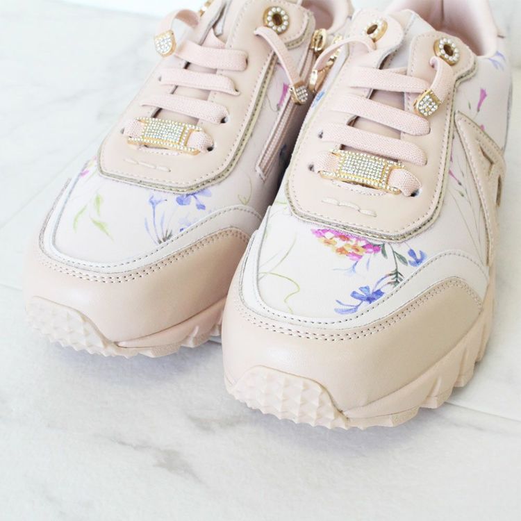 花柄のプリントを施し、パールやキラキラなどフェミニンな要素を散りばめたスニーカー。カジュアルすぎないデザインなので、ワンピースなどと合わせてレディな着こなしを楽しむのも◎。