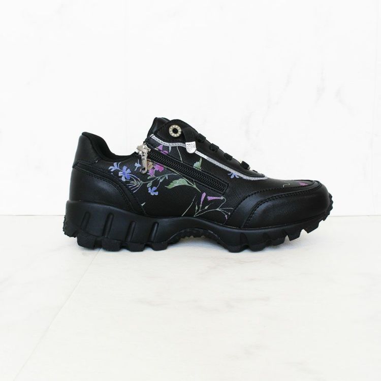 《結ばない靴紐》フラワー柄サイドファスナースニーカー