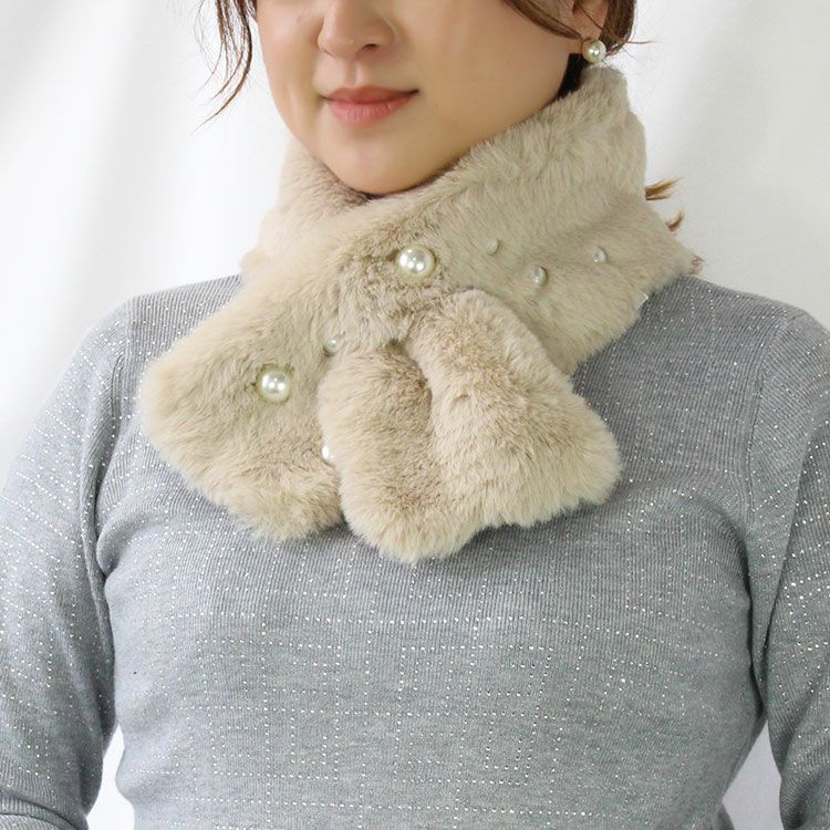 ふわふわのエコファーティペット。大小のパールがレディなムードをプラス。