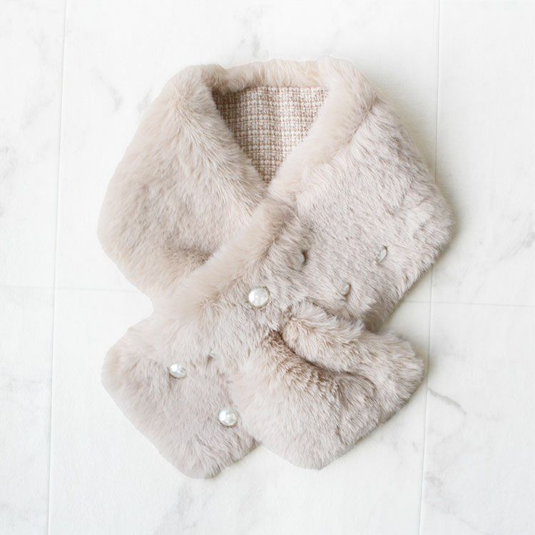 ふわふわのエコファーティペット。大小のパールがレディなムードをプラス。